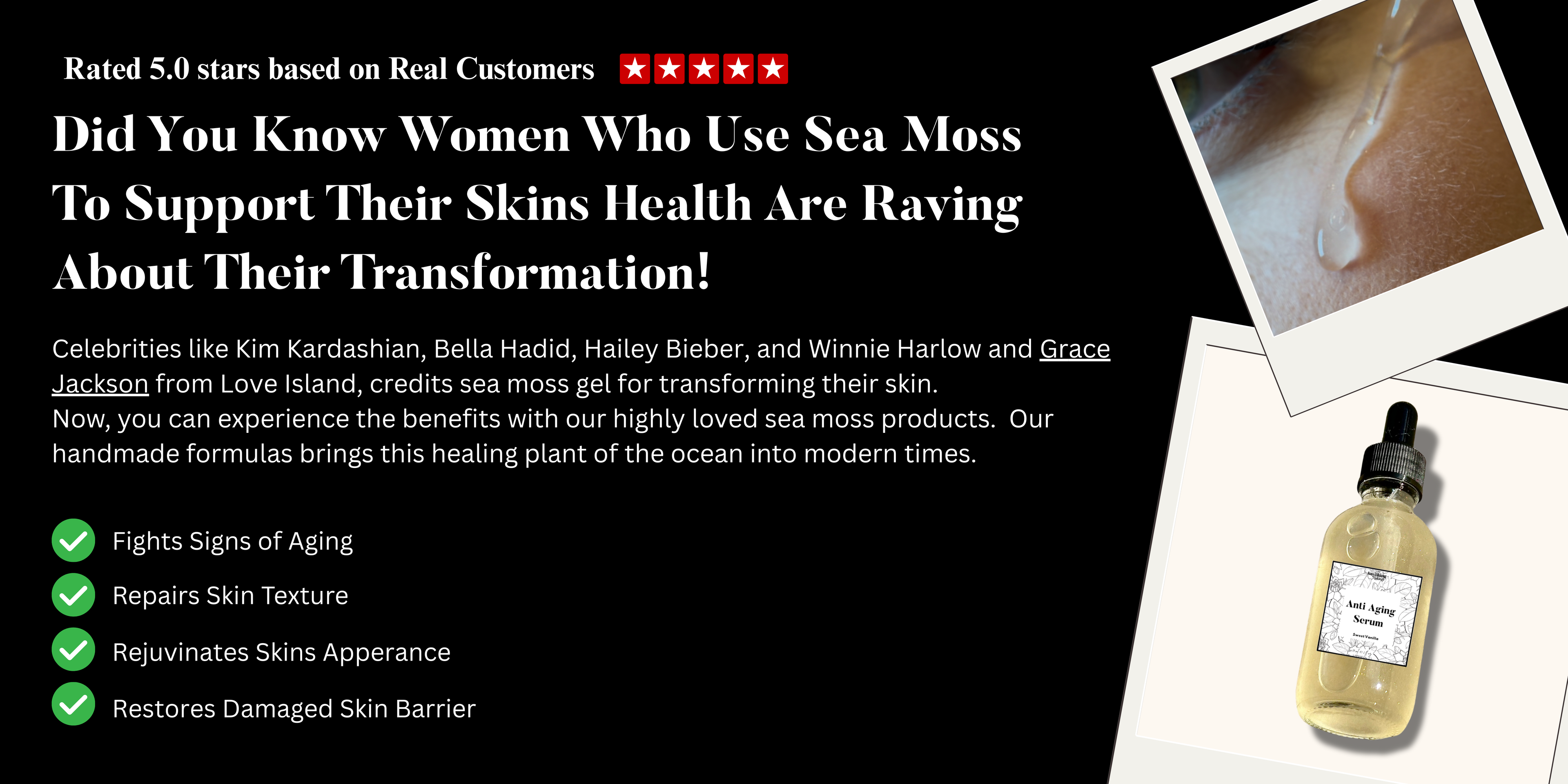 The antioxidants in sea moss help fight free radicals that contribute to premature aging, keeping the skin looking youthful and firm.