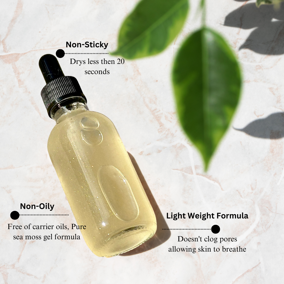 Distilled Chondrus Crispus (Sea Moss), Brassica napus (v. glycerin), vanilla oleoresin (vanilla oil), alpha-tocopherol (vitamin e), Preservative